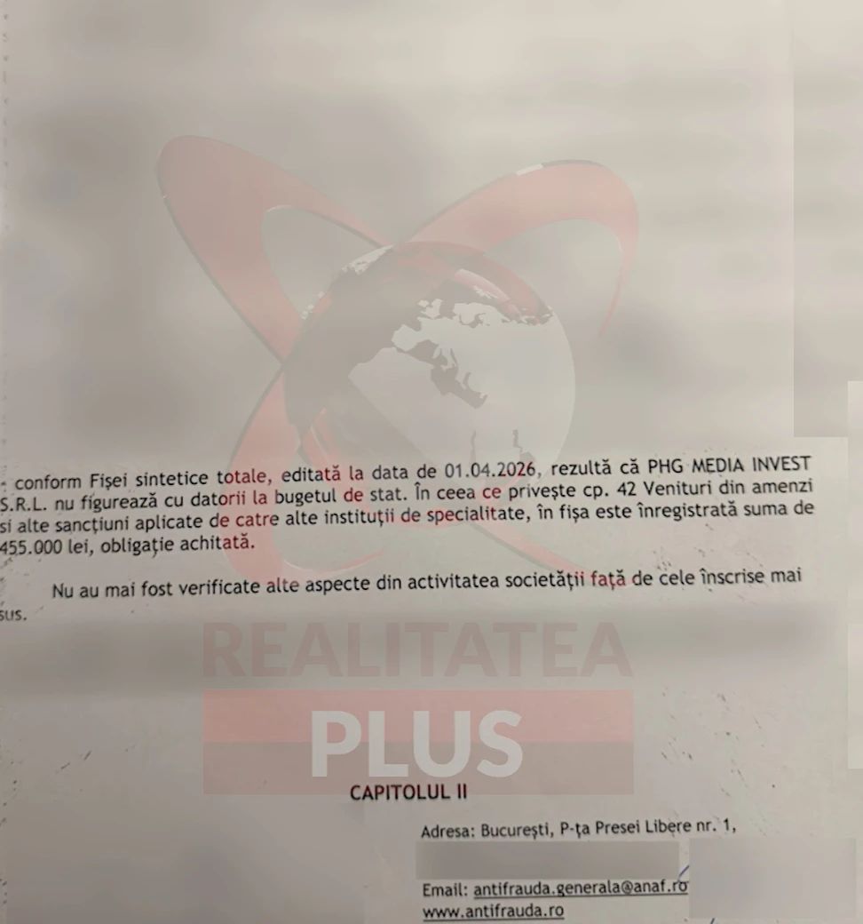 „Astăzi a venit procesul-verbal de la ANAF care arată foarte clar că Realitatea Plus are toate datoriile plătite la zi”