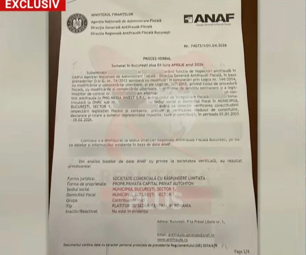 Iată, astăzi este adevărat că azi au venit inspectorii ANAF, dar ca să lase acest proces-verbal care arată foarte clar că avem toate datoriile plătite la zi, inclusiv amenzile într-o valoare uriașă — sunt peste 200.000 de euro amenzi luate de Realitatea Plus în ultimul an, asta aviz celor care spun că suntem oamenii sistemului. Nu știu cum oamenii sistemului primesc amenzi pe bandă, iar astăzi din nou emisia ne este întreruptă pentru încă trei ore.