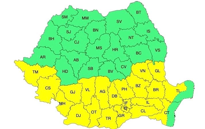 Potrivit meteorologilor, vineri, 2 august, în județele Caraș-Severin, Mehedinți, Dolj, Olt, Teleorman, Giurgiu, Ilfov și municipiul Bucureștivafi caniculă, iar temperaturile maxime vor fi în general de 38...39 de grade. Disconfortul termic va fi accentuat, iar indicele temperatură-umezeală (ITU) va depăși pragul critic de 80 de unități.
