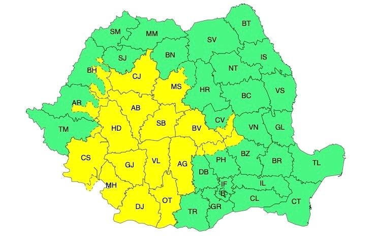 Cod galben de vreme rea, în aproape jumătate de țară. Se anunță vânt puternic în mai multe regiuni și ninsori și viscol la munte.