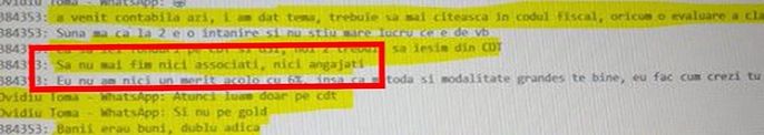 Un alt exemplu concret îl reprezintă un dialog halucinant în care Ovidiu Toma și sora sa, Lavinia Capră, administratora unora dintre firmele lui Toma, decid că trebuie să iasă din firme pentru a putea primi fonduri europene și guvernamentale.