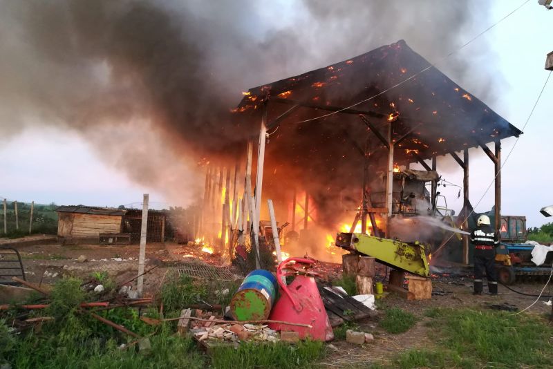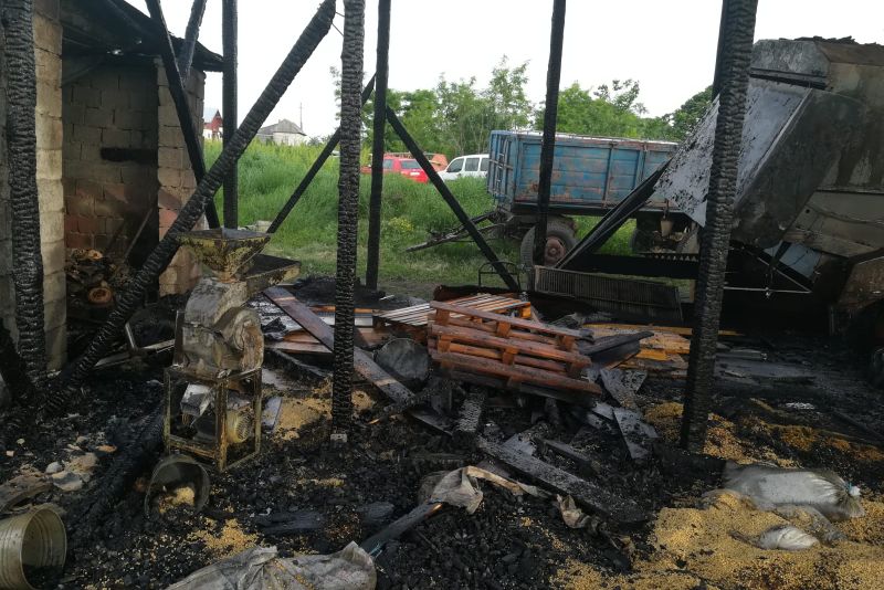 Incendiu puternic la Stiubieni. O combină și o magazie au ars FOTO