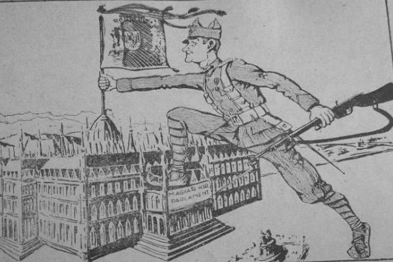 România a continuat să rămână de partea Imperiului Austro-Ungar printr-un tratat secret de alianță și a rămas neutră în prima parte a Primului Război Mondial. În urma presiunilor din 1916, România intră în război de partea Antantei și se luptă cu monarhia austriacă pentru a-și recăpăta Ardealul, Banatul și Bucovina, iar trupele române au înaintat până la Budapesta unde soldații noștri au atârnat celebra opincă pe Parlamentul de la Budapesta, amintește Realitatea PLUS.