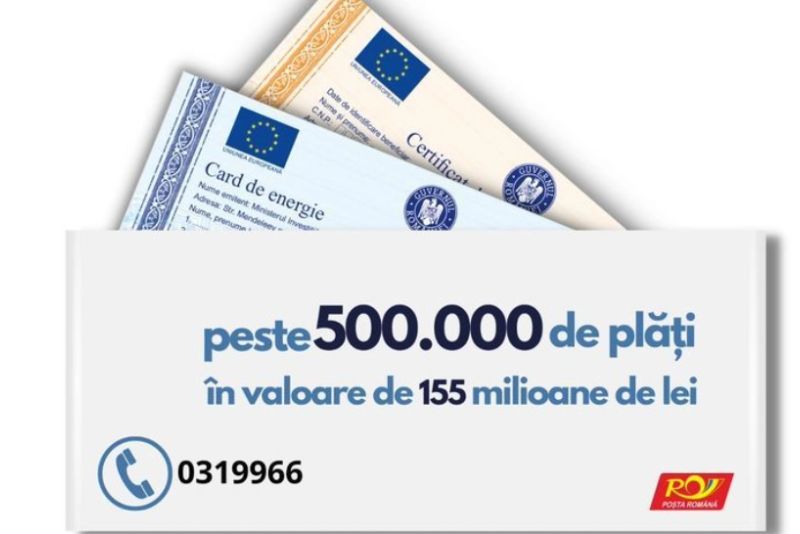 „La mai puţin de o lună de la startul utilizării cardurilor pentru energie, mai mult de jumătate de milion de familii au folosit banii puşi la dispoziţie din fonduri europene pentru a-şi achita facturile. Beneficiarii au la dispoziţie trei metode de plată, pentru a achita repede şi simplu facturile la energie. Sunt 9.000 factori poştali şi agenţi poştali cu aparate optice pentru scanat documente, la care se pot plăti facturile. De asemenea, a crescut numărul celor care achită online, faţă de primele zile de utilizare a aplicaţiei. Avem deja 88.000 astfel de plăţi. Am încercat, împreună cu Poşta Română, să punem la dispoziţia beneficiarilor toate informaţiile necesare pentru a-i sprijini pe parcursul implementării programului, iar pentru situaţiile punctuale aceştia primesc ajutor prin call center-ul dedicat 0319966”, a declarat ministrul Marcel Boloş.