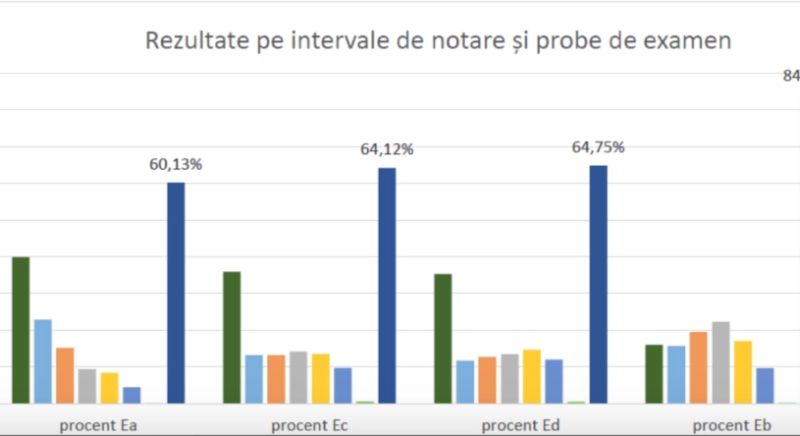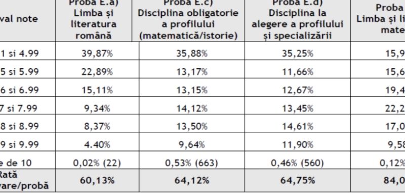La proba de limba română cele mai multe note, aproape 40%, au fost sub 5. Alți 22% dintre elevi au luat note între 5 și 6 la această probă.