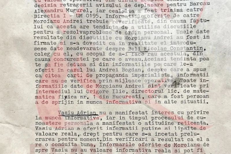 Documentul relevă că Nicușor Dan a furnizat două note informative despre unul dintre colegii săi. Mai mult, se sugerează că actualul primar a manifestat dorința de a colabora cu Securitatea, oferindu-se să devină informator.