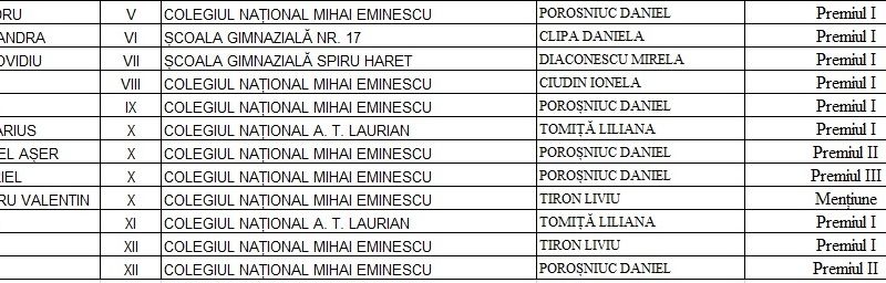 În afara celor 8 elevi de la Colegiul Național Mihai Eminescu, mai sunt calificați doi elevi de la Colegiul Național AT Laurian și câte unul de la Școala Gimnazială Nr. 17 și Școala Gimnazială Spiru Haret. Faza națională este programată în perioada 20-26 aprilie la Hunedoara.