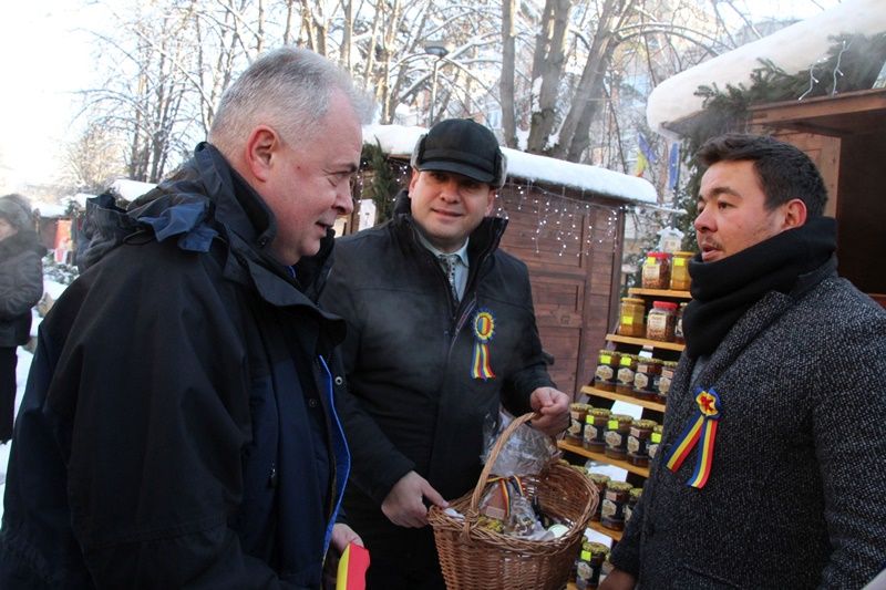 Primarul Cătălin Flutur împreună consilierii locali și angajații primăriei au împărțit eșarfe tricolore producătorilor prezenți la deschiderea târgului.Căsuțele de pe Pietonalul Unirii sunt ocupate în mare parte de membrii Asociației Produs în Botoșani. Apicultorul Iustin Marineac a venit cu mai multe sortimente de miere de albine, cu Api-imunostimulator și cu alte produse realizate în ferma lui. Firma Viofanny de la Săveni a venit cașcaval, brânzeturi și mai multe produse special pregătite pentru această perioadă. De la târg nu lipsesc produsele de la Cozonacul Domnesc, dulceața de trandafiri și celelalte produse din trandafiri și nici preparate din carne. Botoșănenii vor avea posibilitatea să viziteze târgul și să își cumpere produsele până la finalul acestei luni. Potrivit reprezentanților Produs în Botoșani, târgul va fi deschis zilnic până la sfârșitul anului.https://youtu.be/Y8lpCC-qF20