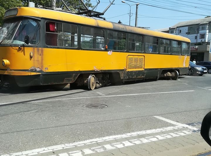 Tramvai deraiat în intersecția străzilor Primăverii cu George Enescu FOTO