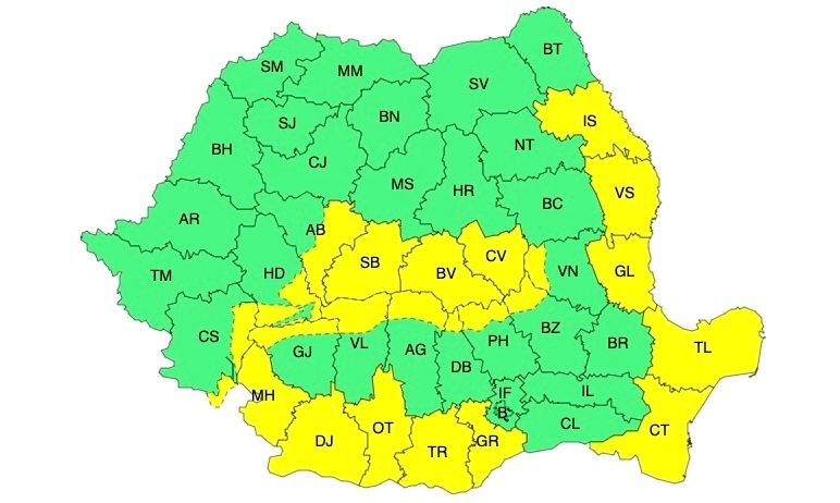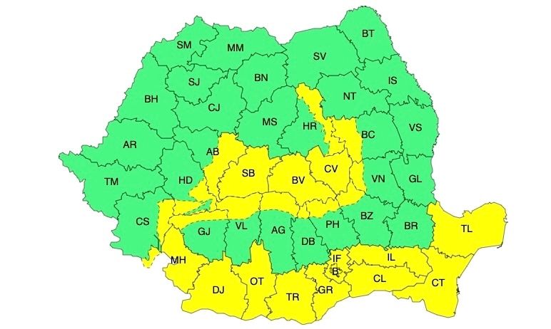 Zone afectate și fenomene vizate: viscol foarte puternic la altitudini de peste 1700 m în județele Caraș-Severin, Hunedoara, Alba, Sibiu, Brașov, Argeș și Dâmbovița