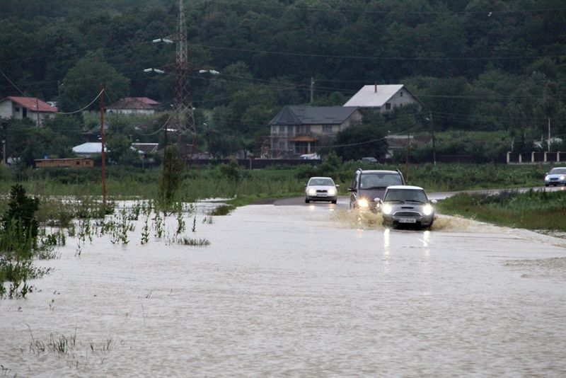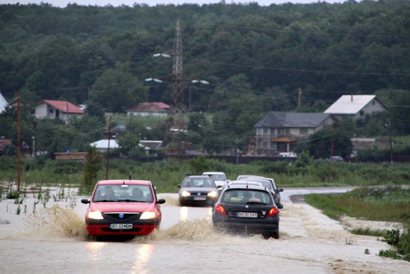 Apa a pătruns pe drumul european Botoșani – Tg. Frumos iar traficul încă se desfășoară cu dificultate la intrarea în localitatea Copălău.