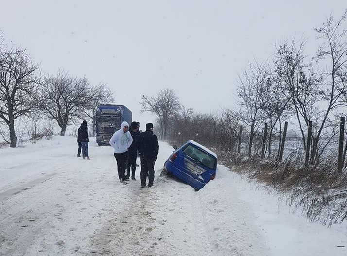 UPDATE. Probleme și pe drumul Botoșani - Dorohoi. Drumul este acoperit cu zăpadă iar unii șoferi au ajuns cu mașinile în șanț