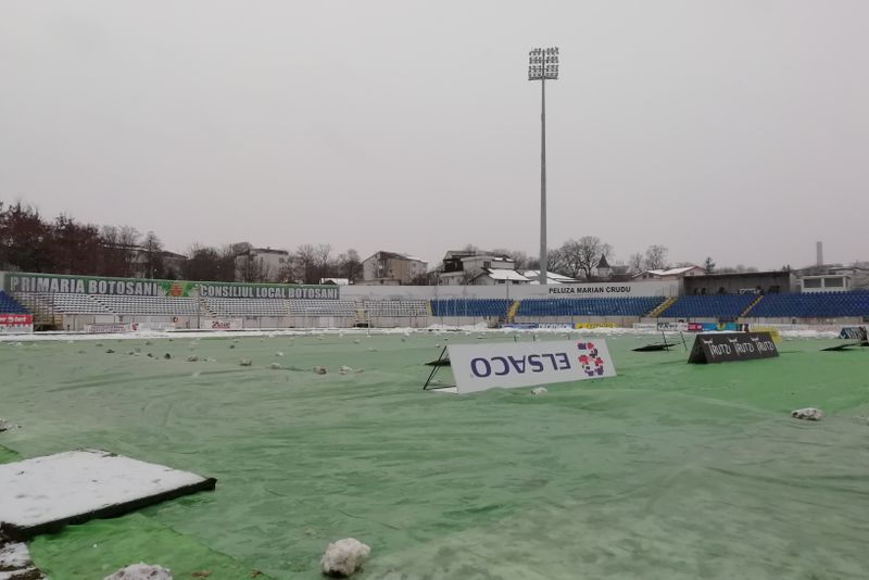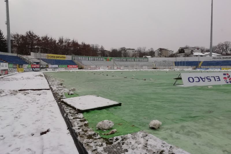 Pentru că în Botoșani a început să ningă și se anunță temperaturi scăzute în următoarele zile, reprezentanții clubului FC Botoșani au decis utilizeze foliile de protecție. De asemenea, ei spun că vor porni și sistemul de încălzire al terenului.Antrenorul Liviu Ciobotariu spune că terenul va fi bun la ora jocului chiar dacă va ninge și vor fi temperaturi scăzute.
